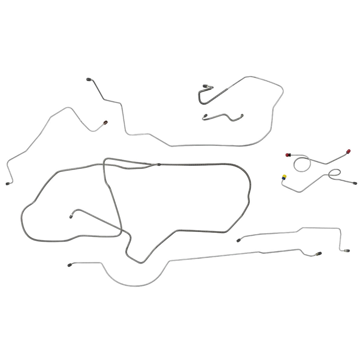 This preformed complete brake line kit will replace all the metal brake lines on your vehicle and includes the master cylinder lines, left front line and right front crossover line, intermediate lines, and rear axle lines/trailing arm lines.
