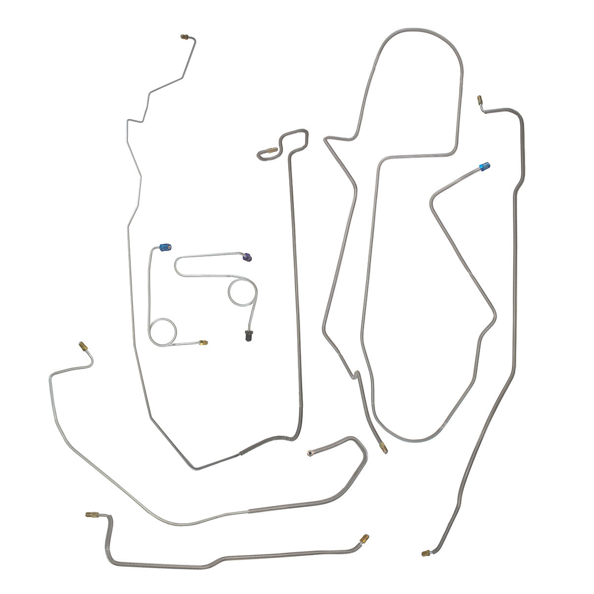 This preformed complete brake line kit will replace all the metal brake lines on your vehicle and includes the master cylinder lines, left front line and right front crossover line, intermediate lines, and rear axle lines/trailing arm lines.