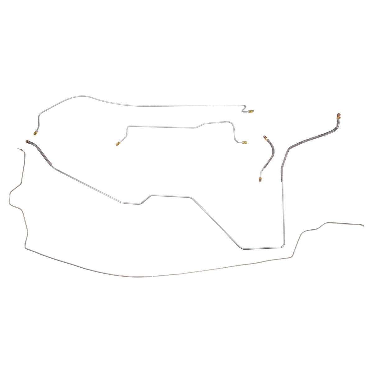 This preformed complete brake line kit will replace all the metal brake lines on your vehicle and includes the master cylinder lines, left front line and right-front crossover line, intermediate lines, and rear axle lines/trailing arm lines.