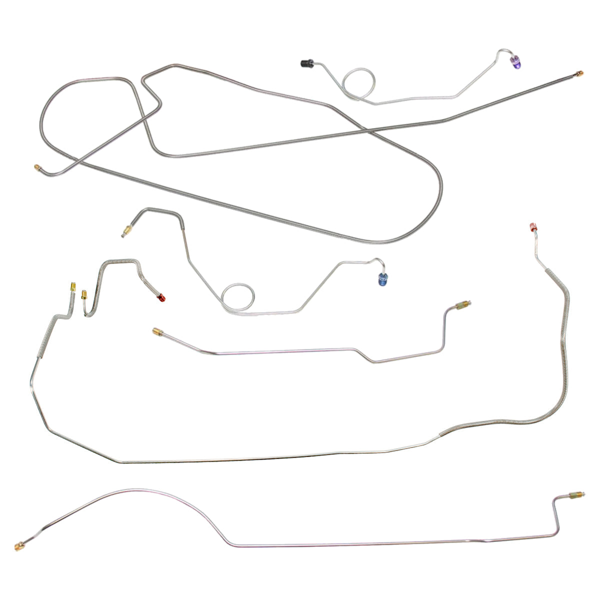 This preformed complete brake line kit will replace all the metal brake lines on your vehicle and includes the master cylinder lines, left front line and right-front crossover line, intermediate lines, and rear axle lines/trailing arm lines.