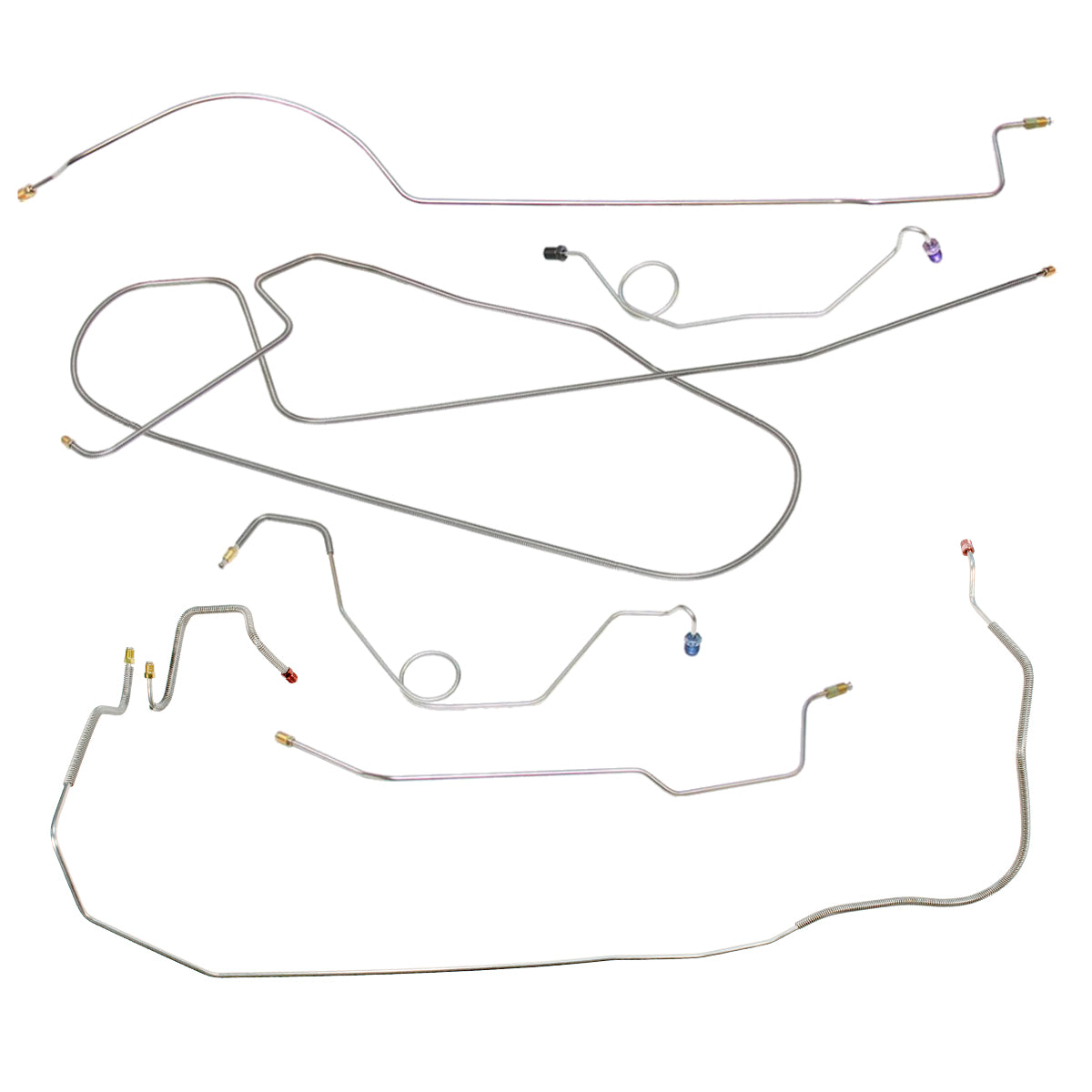 This preformed complete brake line kit will replace all the metal brake lines on your vehicle and includes the master cylinder lines, left front line and right-front crossover line, intermediate lines, and rear axle lines/trailing arm lines.
