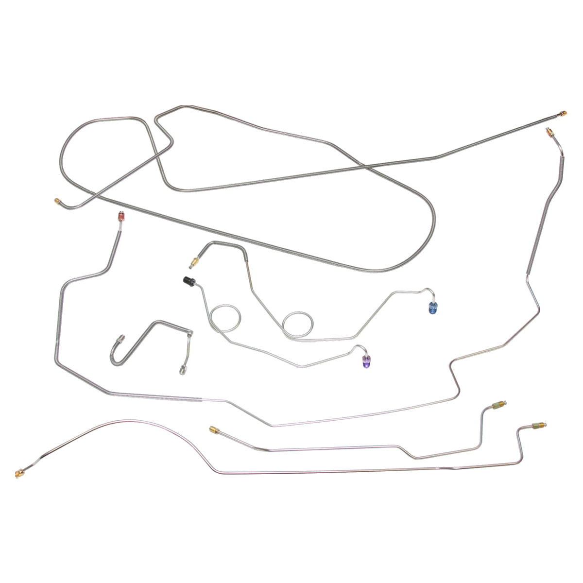 This preformed complete brake line kit will replace all the metal brake lines on your vehicle and includes the master cylinder lines, left front line and right-front crossover line, intermediate lines, and rear axle lines/trailing arm lines.