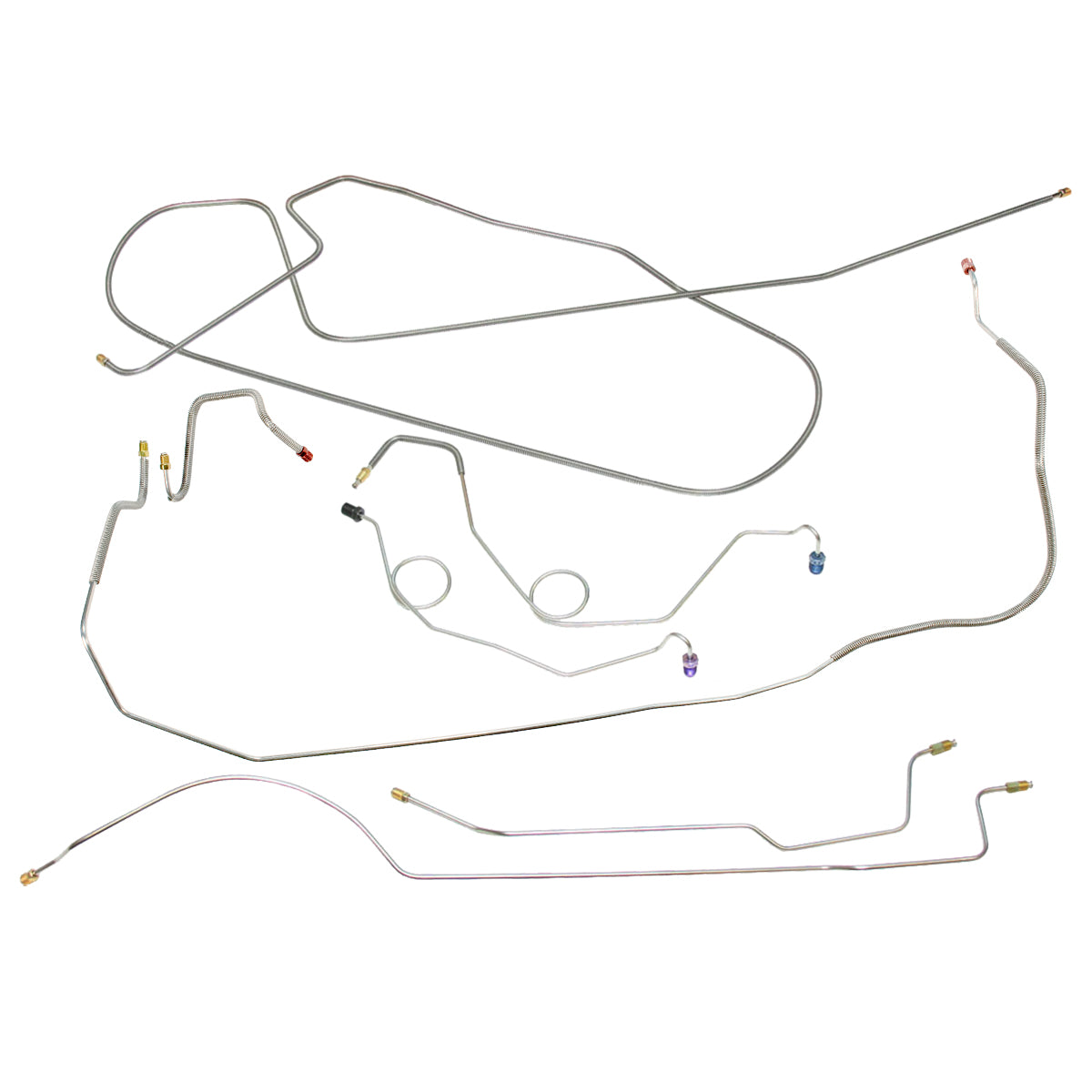 This preformed complete brake line kit will replace all the metal brake lines on your vehicle and includes the master cylinder lines, left front line and right-front crossover line, intermediate lines, and rear axle lines/trailing arm lines.