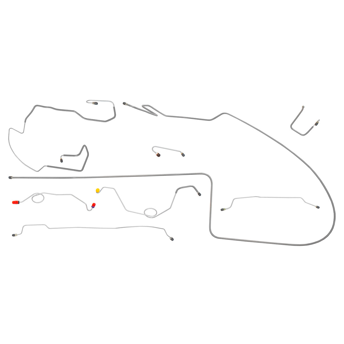 This preformed complete brake line kit will replace all the metal brake lines on your vehicle and includes the master cylinder lines, left front line and right-front crossover line, intermediate lines, and rear axle lines/trailing arm lines.