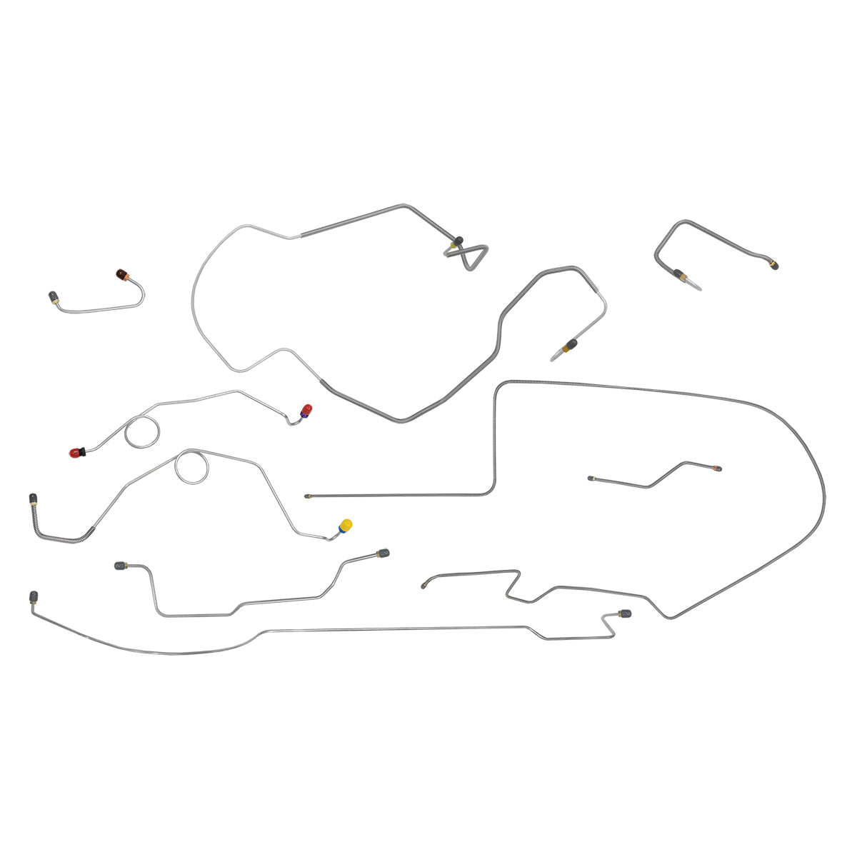 This preformed complete brake line kit will replace all the metal brake lines on your vehicle and includes the master cylinder lines, left front line and right front crossover line, intermediate lines, and rear axle lines/trailing arm lines.