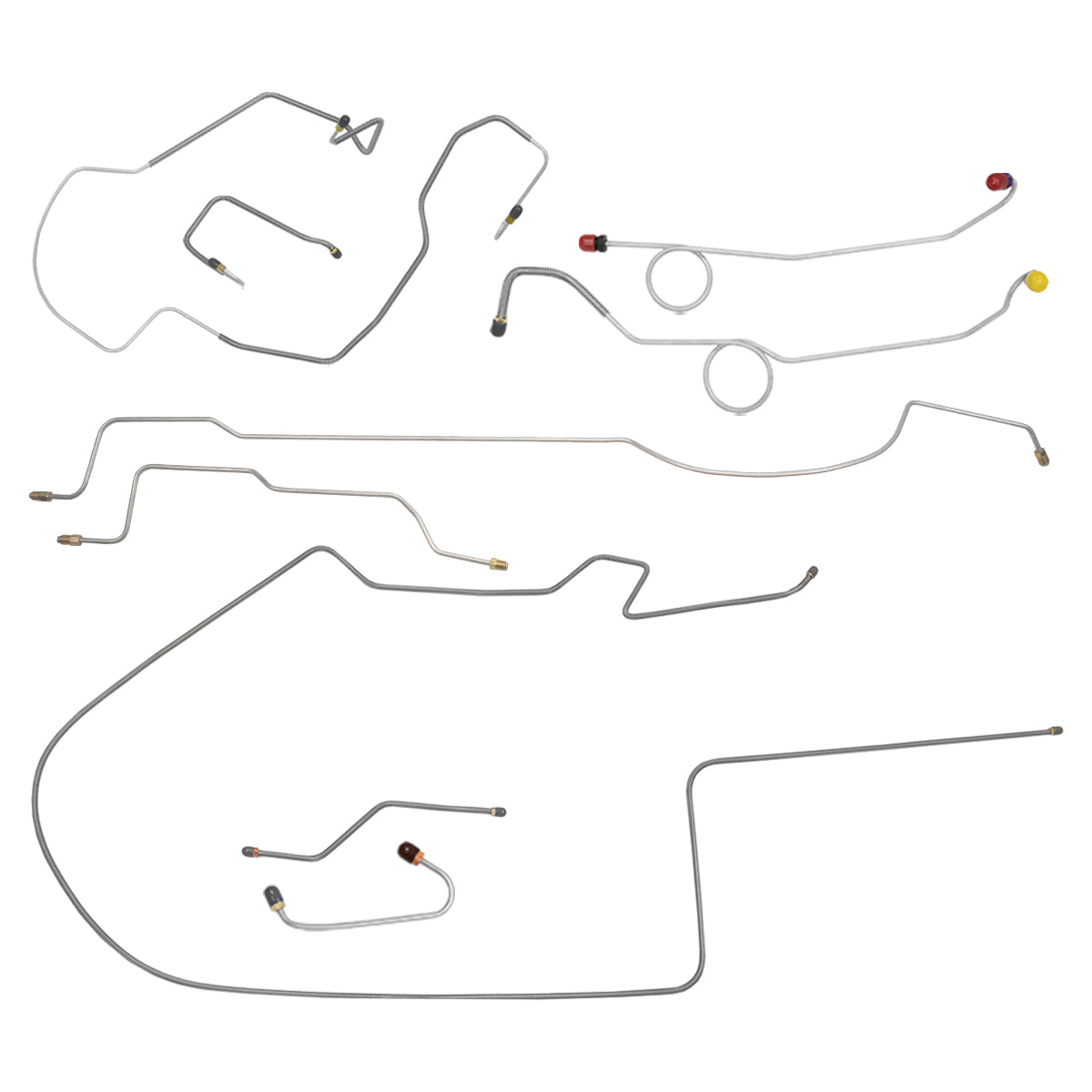 This preformed complete brake line kit will replace all the metal brake lines on your vehicle and includes the master cylinder lines, left front line and right-front crossover line, intermediate lines, and rear axle lines/trailing arm lines.