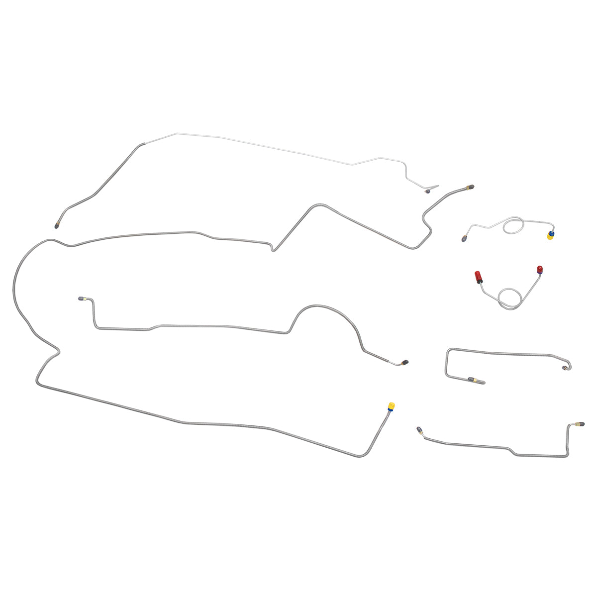 This preformed complete brake line kit will replace all the metal brake lines on your vehicle and includes the master cylinder lines, left front line and right front crossover line, intermediate lines, and rear axle lines/trailing arm lines.