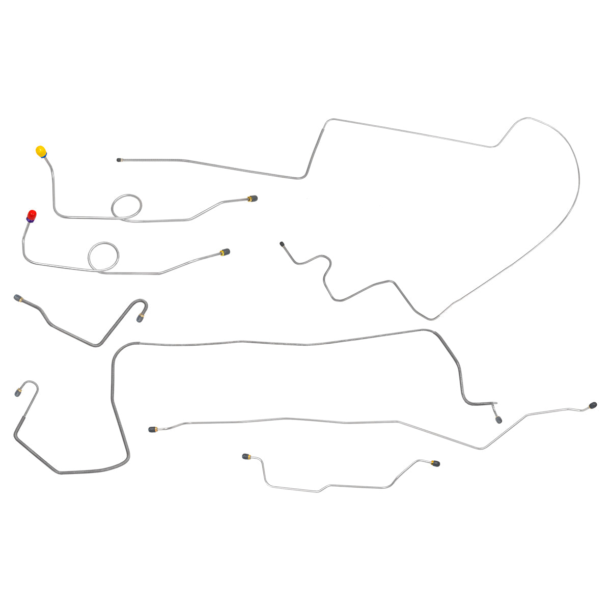 This preformed complete brake line kit will replace all the metal brake lines on your vehicle and includes the master cylinder lines, left front line and right front crossover line, intermediate lines, and rear axle lines/trailing arm lines.