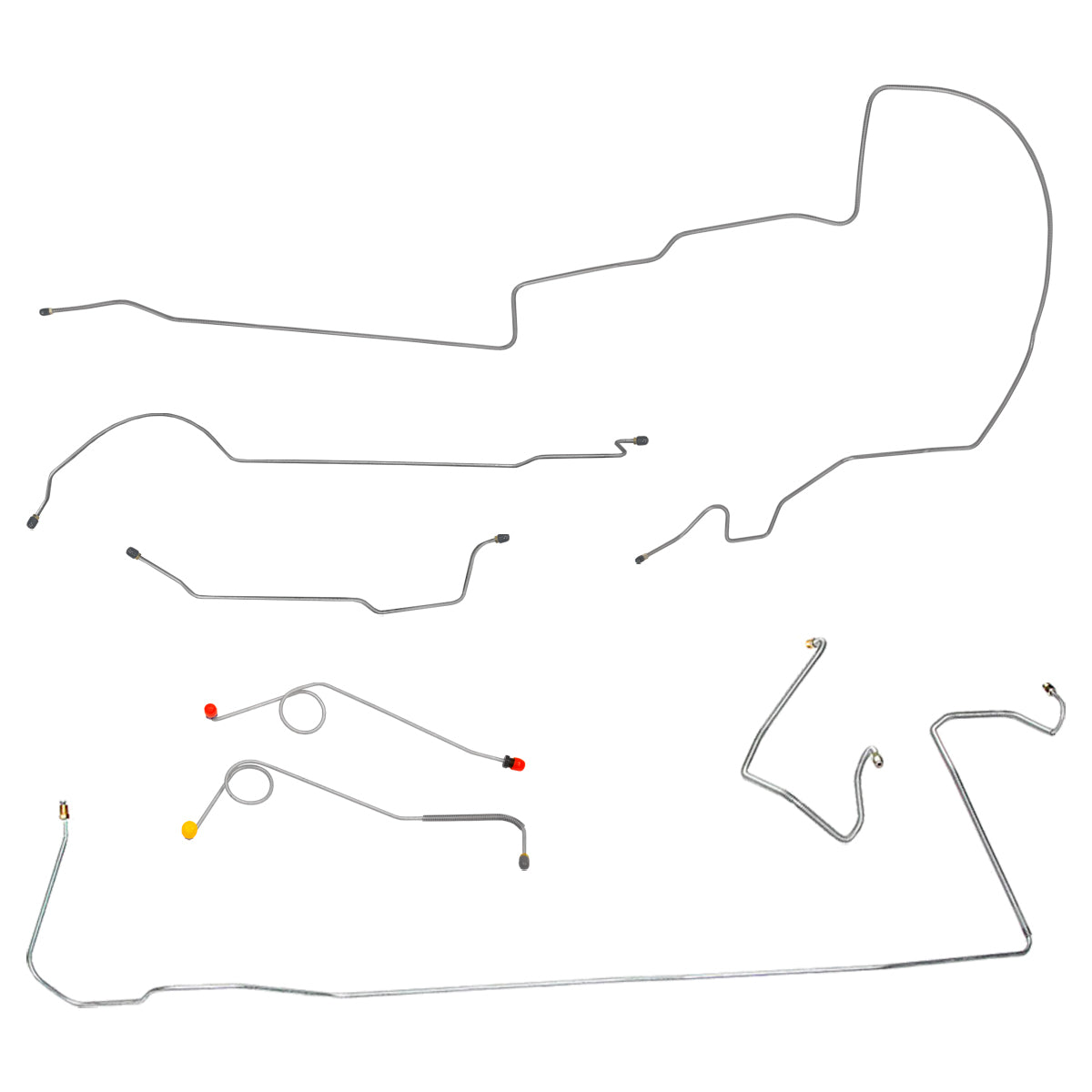 This preformed complete brake line kit will replace all the metal brake lines on your vehicle and includes the master cylinder lines, left front line and right-front crossover line, intermediate lines, and rear axle lines/trailing arm lines.