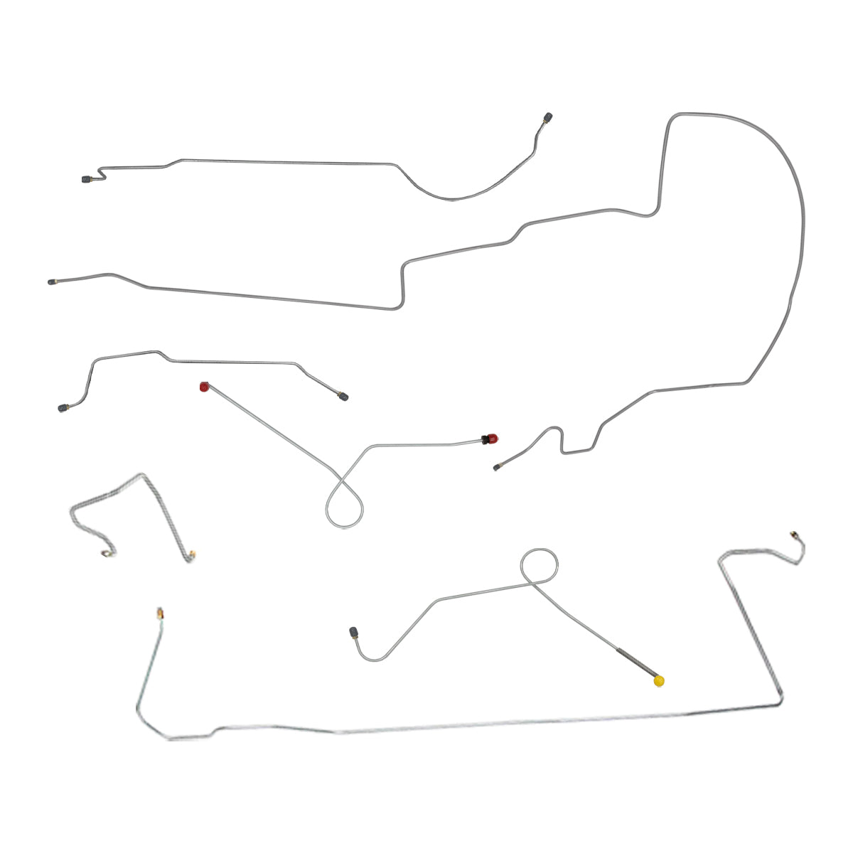 This preformed complete brake line kit will replace all the metal brake lines on your vehicle and includes the master cylinder lines, left front line and right-front crossover line, intermediate lines, and rear axle lines/trailing arm lines.