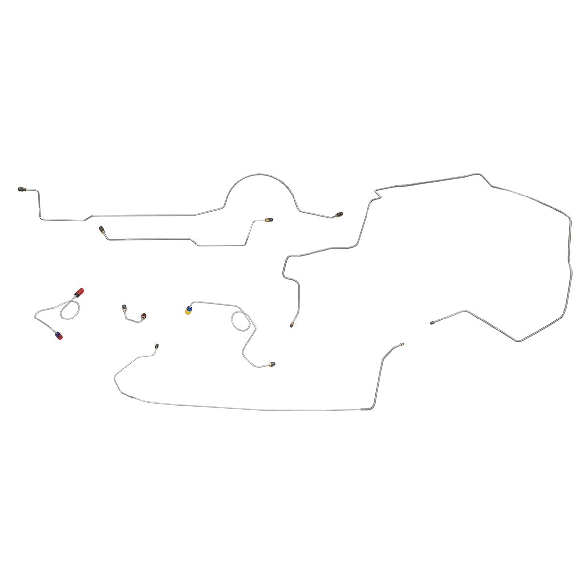 This preformed complete brake line kit will replace all the metal brake lines on your vehicle and includes the master cylinder lines, left front line and right front crossover line, intermediate lines, and rear axle lines/trailing arm lines.