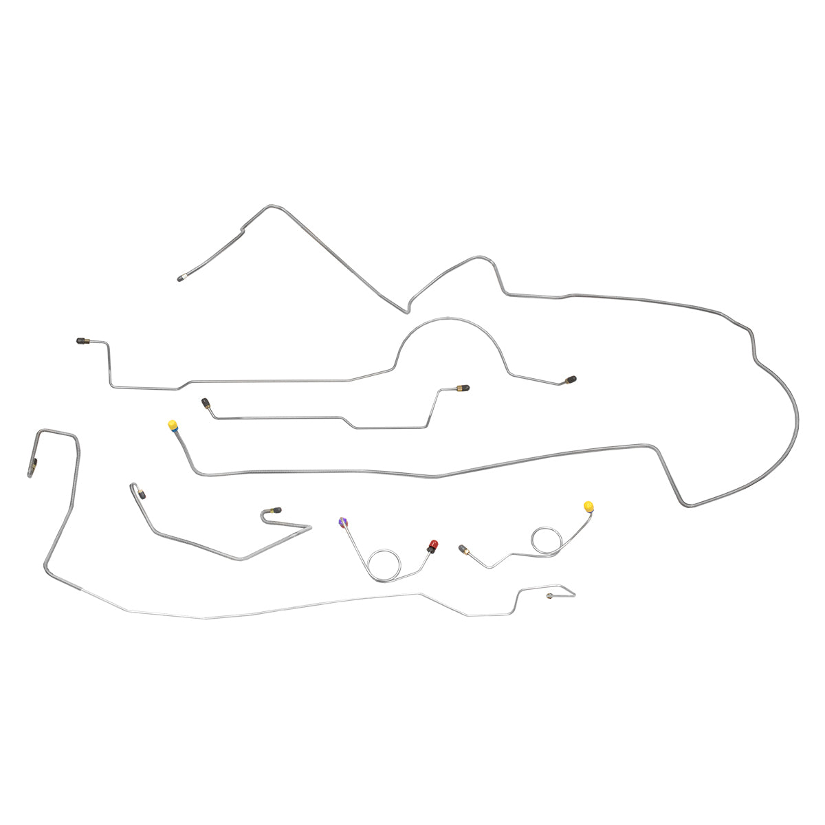 This preformed complete brake line kit will replace all the metal brake lines on your vehicle and includes the master cylinder lines, left front line and right front crossover line, intermediate lines, and rear axle lines/trailing arm lines.