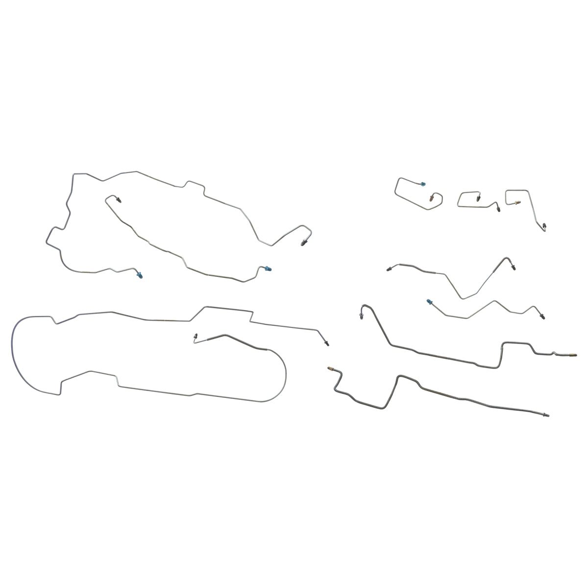 This preformed complete brake line kit will replace all the metal brake lines on your vehicle and includes the master cylinder lines, left front line and right front crossover line, intermediate lines, and rear axle lines/trailing arm lines.