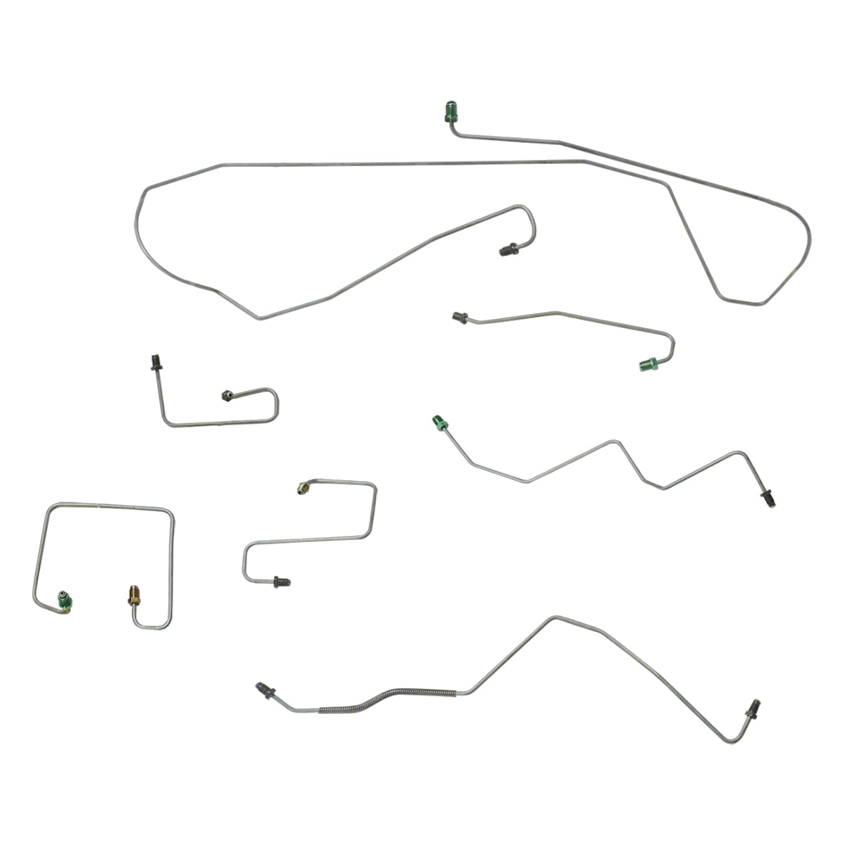 This preformed front brake line kit includes all the metal brake lines to supply the front two wheels of your vehicle and includes the master cylinder lines, left front line, and right front crossover line.