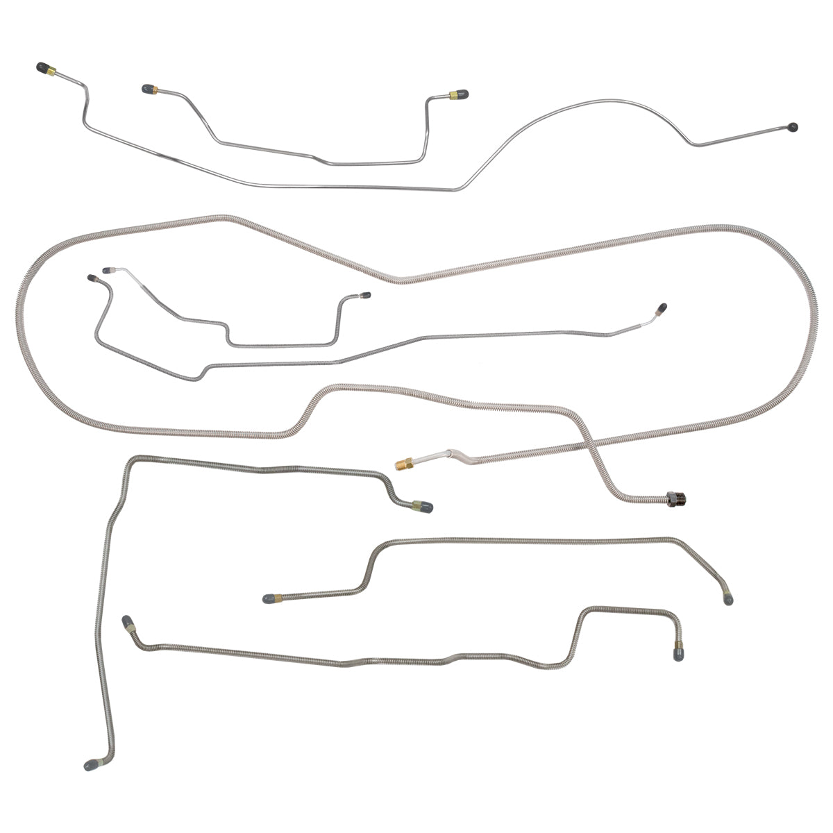 This preformed complete brake line kit will replace all the metal brake lines on your vehicle and includes the master cylinder lines, left front line and right front crossover line, intermediate lines, and rear axle lines/trailing arm lines.