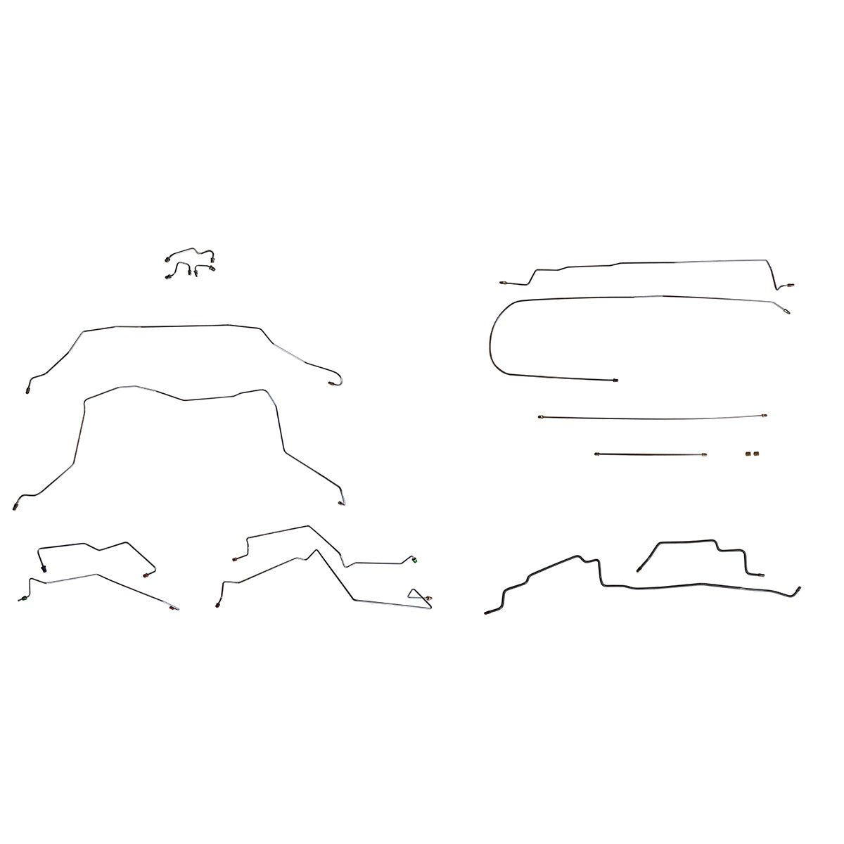 This preformed complete brake line kit will replace all the metal brake lines on your vehicle and includes the master cylinder lines, left front line and right front crossover line, intermediate lines, and rear axle lines/trailing arm lines.