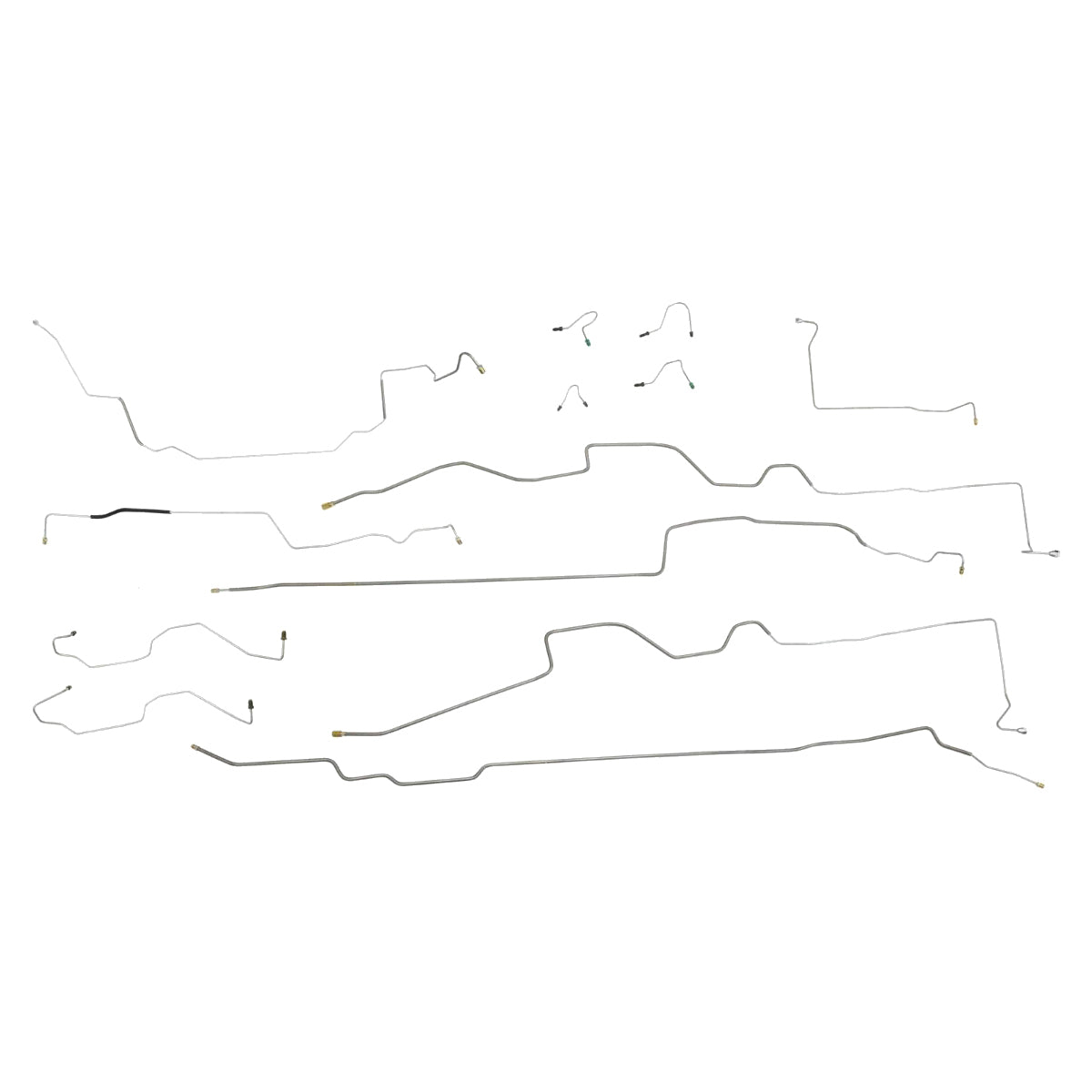 This preformed complete brake line kit will replace all the metal brake lines on your vehicle and includes the master cylinder lines, left front line and right front crossover line, intermediate lines, and rear axle lines/trailing arm lines.
