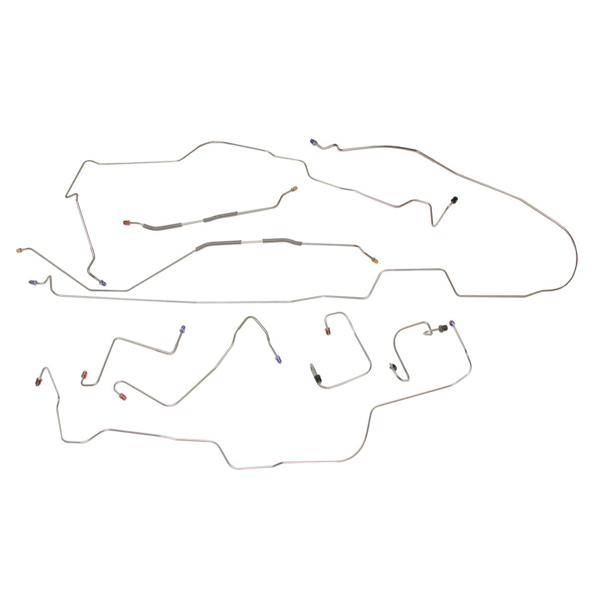 This preformed complete brake line kit will replace all the metal brake lines on your vehicle and includes the master cylinder lines, left front line and right front crossover line, intermediate lines, and rear axle lines/trailing arm lines.
