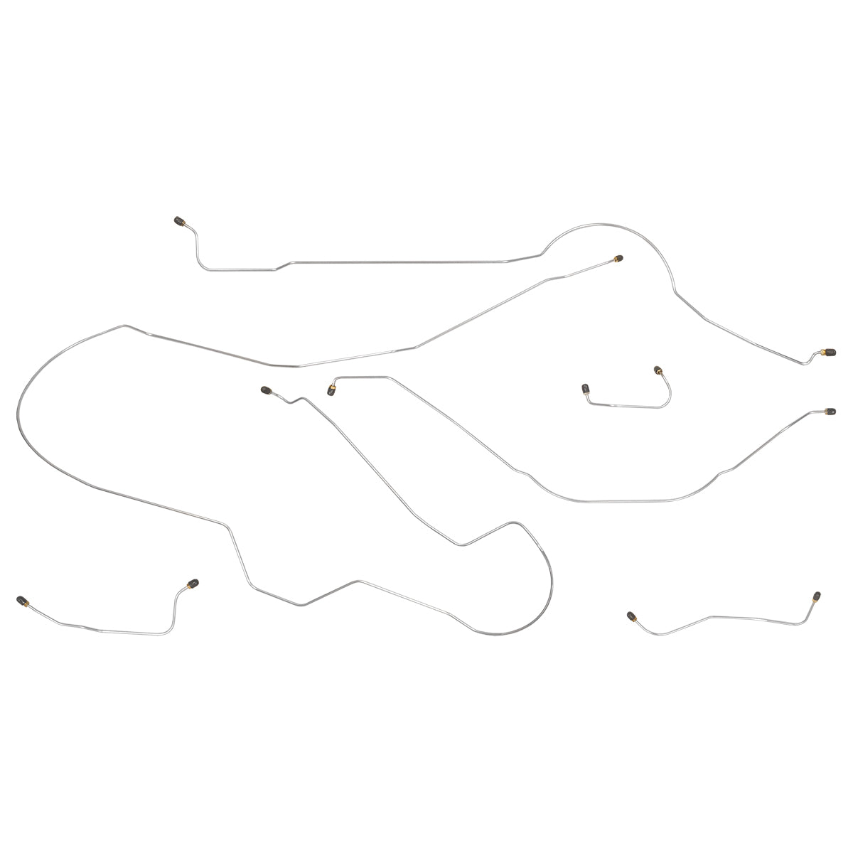 This preformed complete brake line kit will replace all the metal brake lines on your vehicle and includes the master cylinder lines, left front line and right front crossover line, intermediate lines, and rear axle lines/trailing arm lines.
