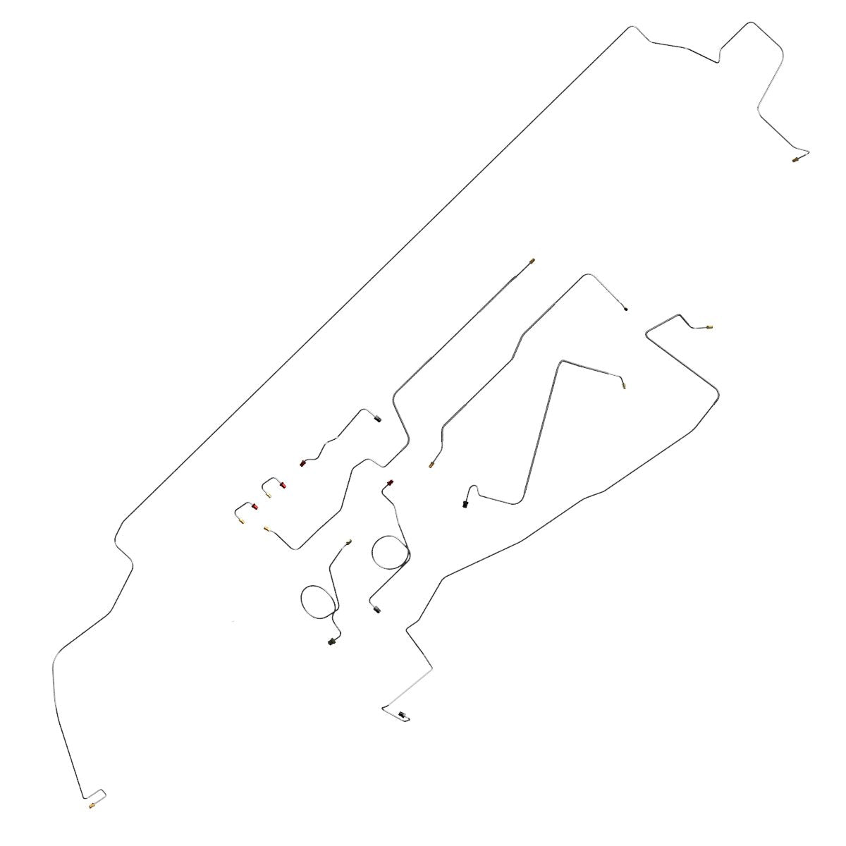 This preformed complete brake line kit will replace all the metal brake lines on your vehicle and includes the master cylinder lines, left front line and right front crossover line, intermediate lines, and rear axle lines/trailing arm lines.