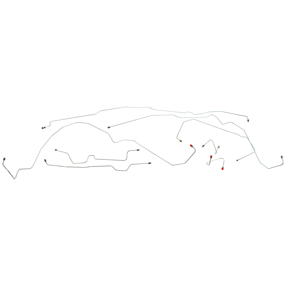 This preformed complete brake line kit will replace all the metal brake lines on your vehicle and includes the master cylinder lines, left front line and right-front crossover line, intermediate lines, and rear axle lines/trailing arm lines.