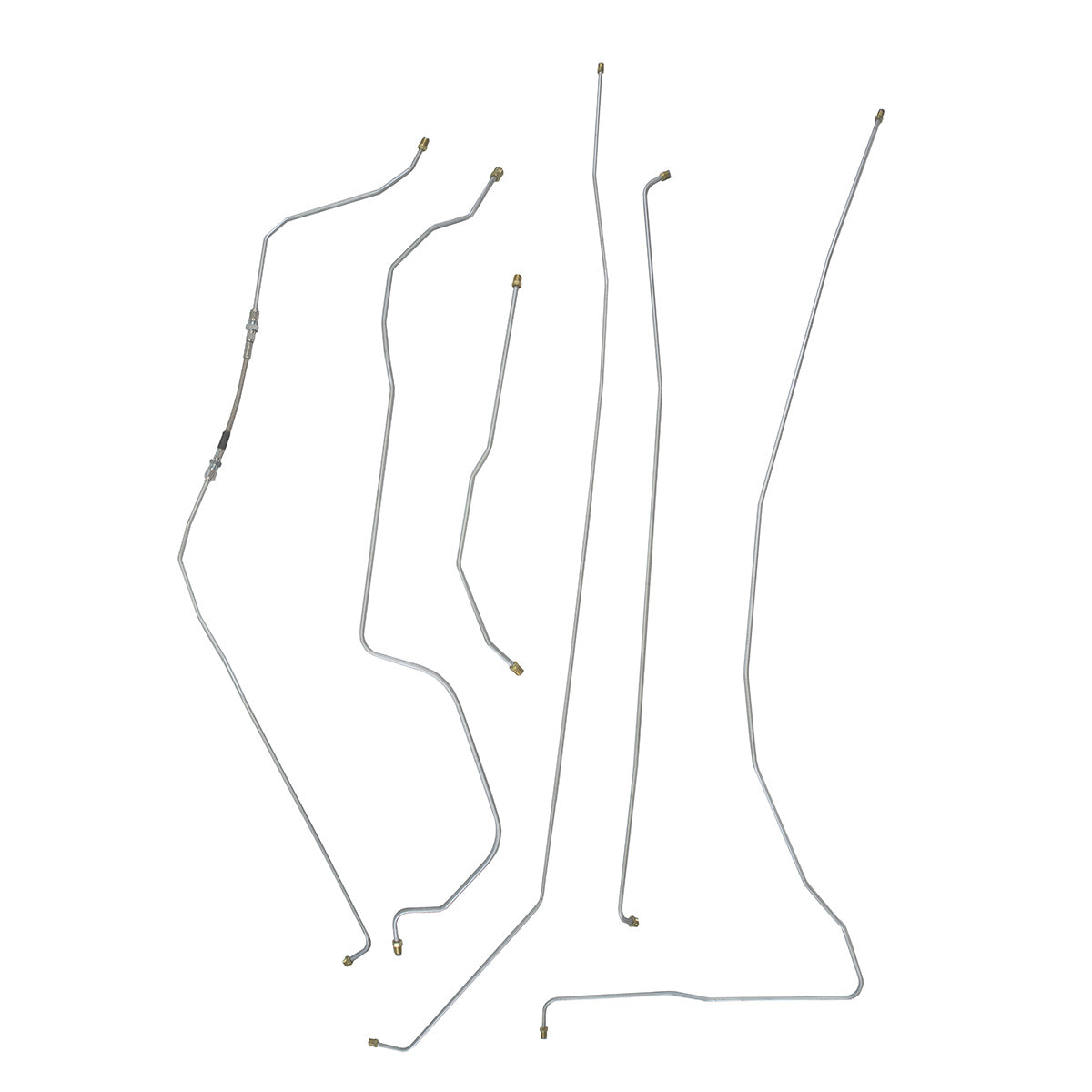 This preformed complete brake line kit will replace all the metal brake lines on your vehicle and includes the master cylinder lines, left front line and right-front crossover line, intermediate lines, and rear axle lines/trailing arm lines.