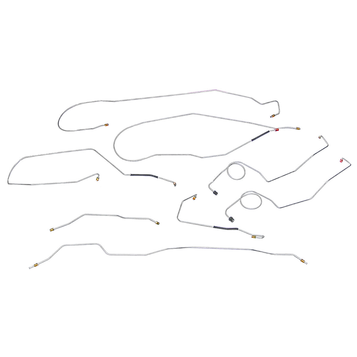 This preformed complete brake line kit will replace all the metal brake lines on your vehicle and includes the master cylinder lines, left front line and right-front crossover line, intermediate lines, and rear axle lines/trailing arm lines.