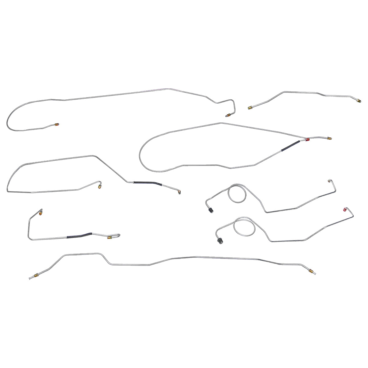 This preformed complete brake line kit will replace all the metal brake lines on your vehicle and includes the master cylinder lines, left front line and right-front crossover line, intermediate lines, and rear axle lines/trailing arm lines.