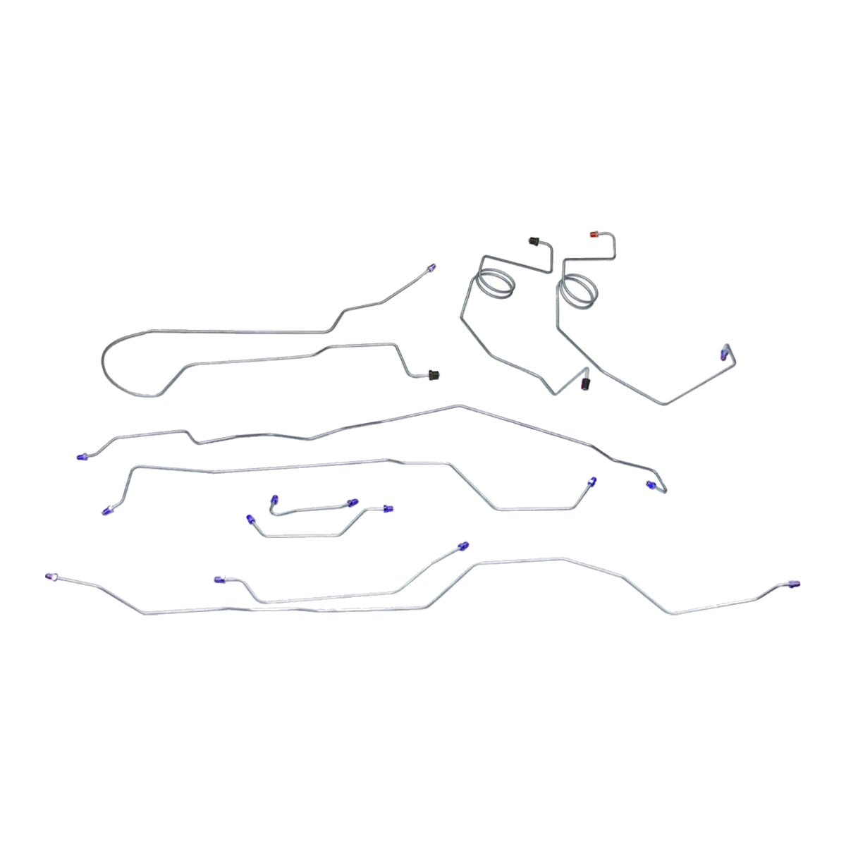 This preformed complete brake line kit will replace all the metal brake lines on your vehicle and includes the master cylinder lines, left front line and right front crossover line, intermediate lines, and rear axle lines/trailing arm lines.