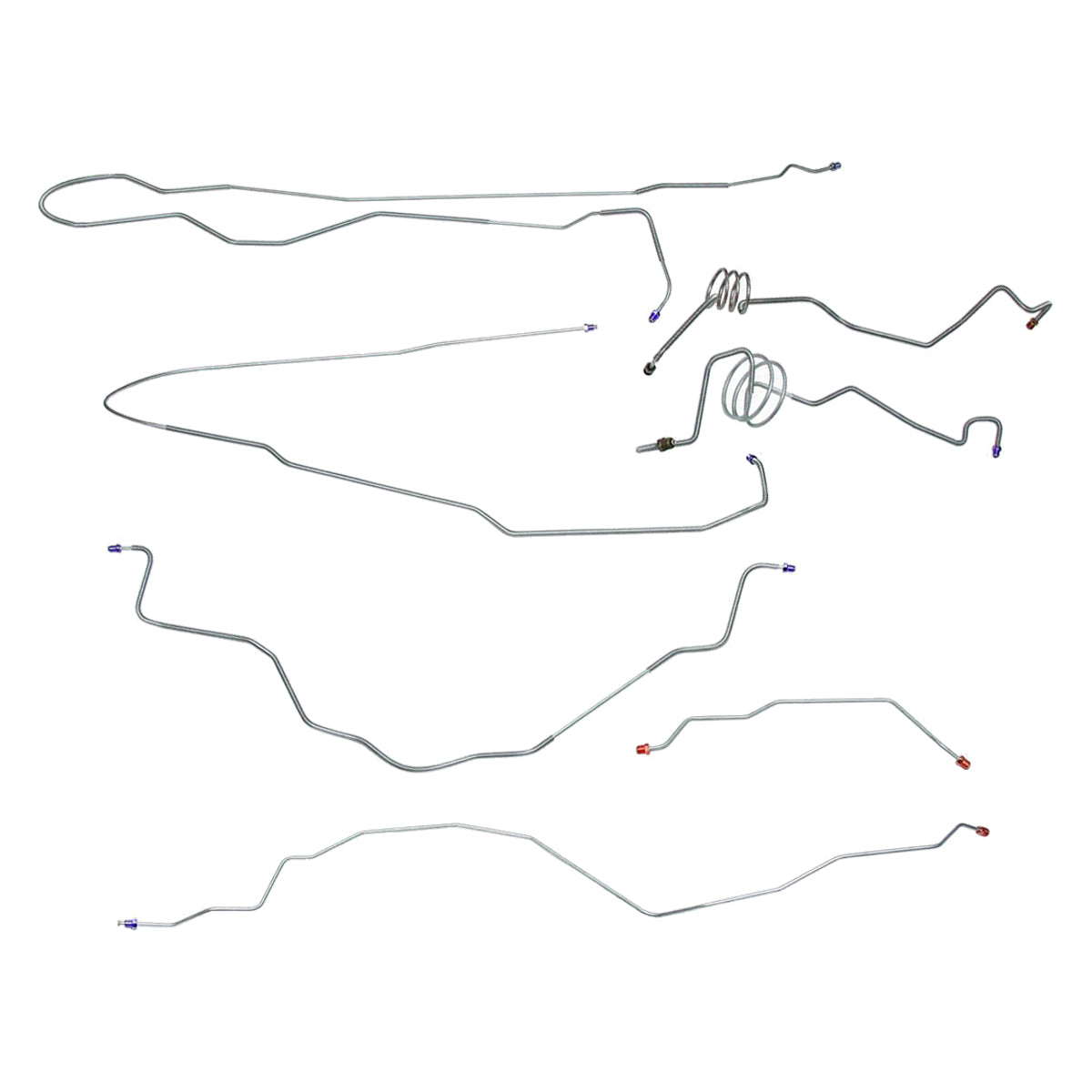 This preformed complete brake line kit will replace all the metal brake lines on your vehicle and includes the master cylinder lines, left front line and right front crossover line, intermediate lines, and rear axle lines/trailing arm lines.