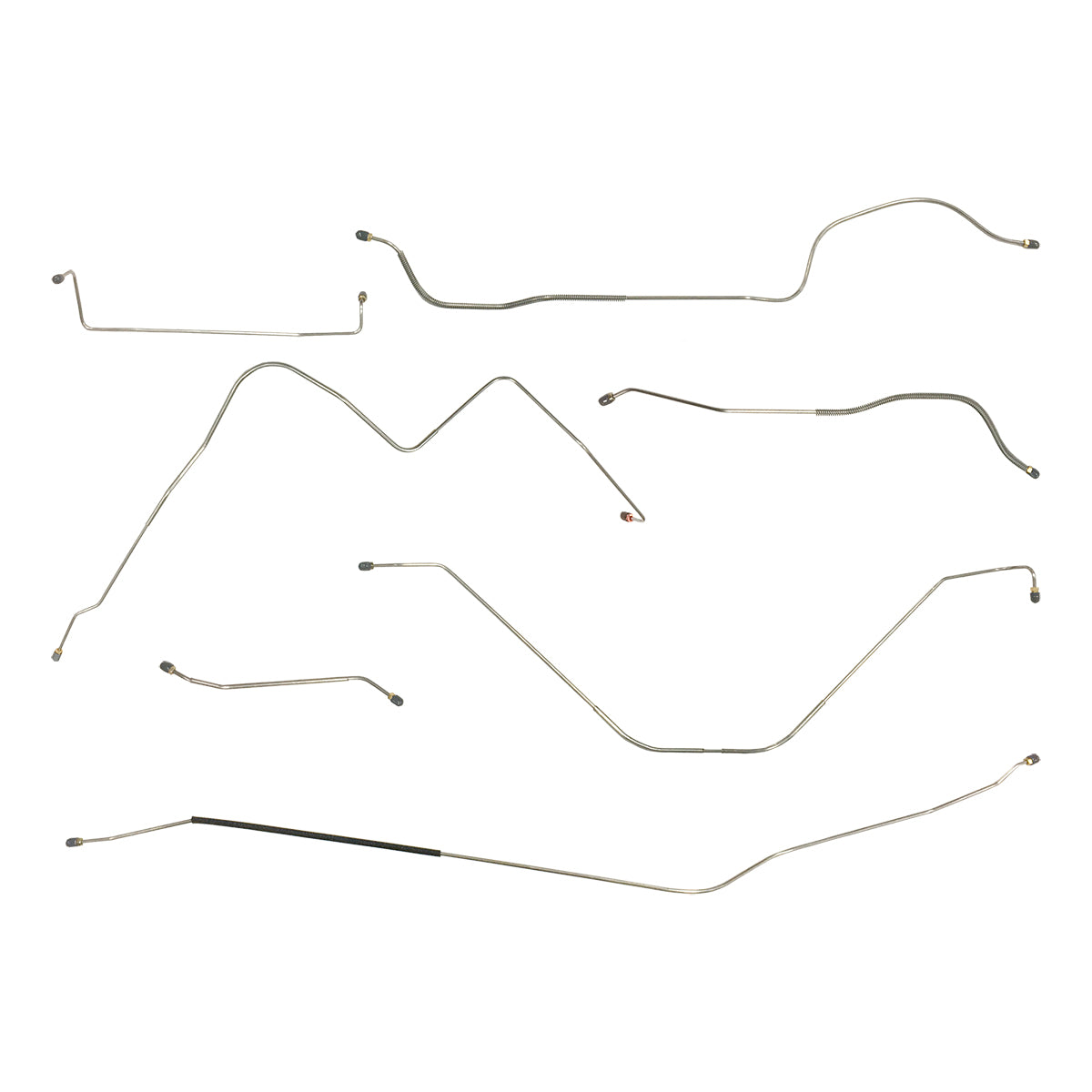 This preformed complete brake line kit will replace all the metal brake lines on your vehicle and includes the master cylinder lines, left front line and right front crossover line, intermediate lines, and rear axle lines/trailing arm lines.