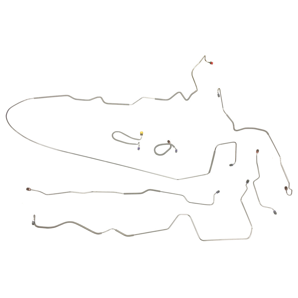 This preformed complete brake line kit will replace all the metal brake lines on your vehicle and includes the master cylinder lines, left front line and right-front crossover line, intermediate lines, and rear axle lines/trailing arm lines.