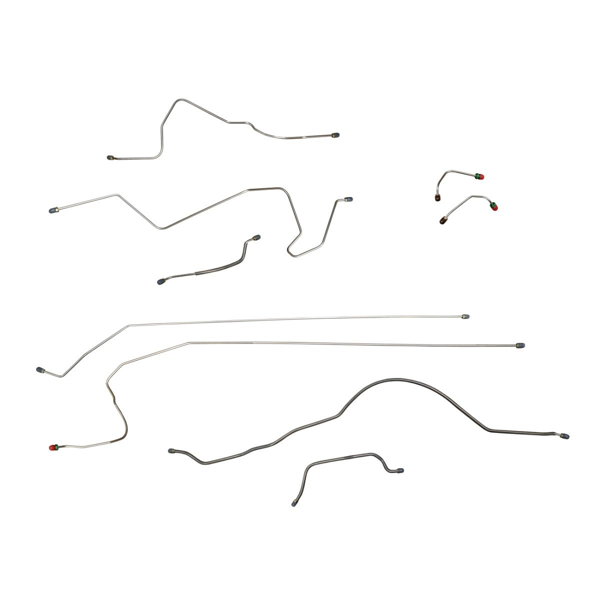 This preformed complete brake line kit will replace all the metal brake lines on your vehicle and includes the master cylinder lines, left front line and right front crossover line, intermediate lines, and rear axle lines/trailing arm lines.