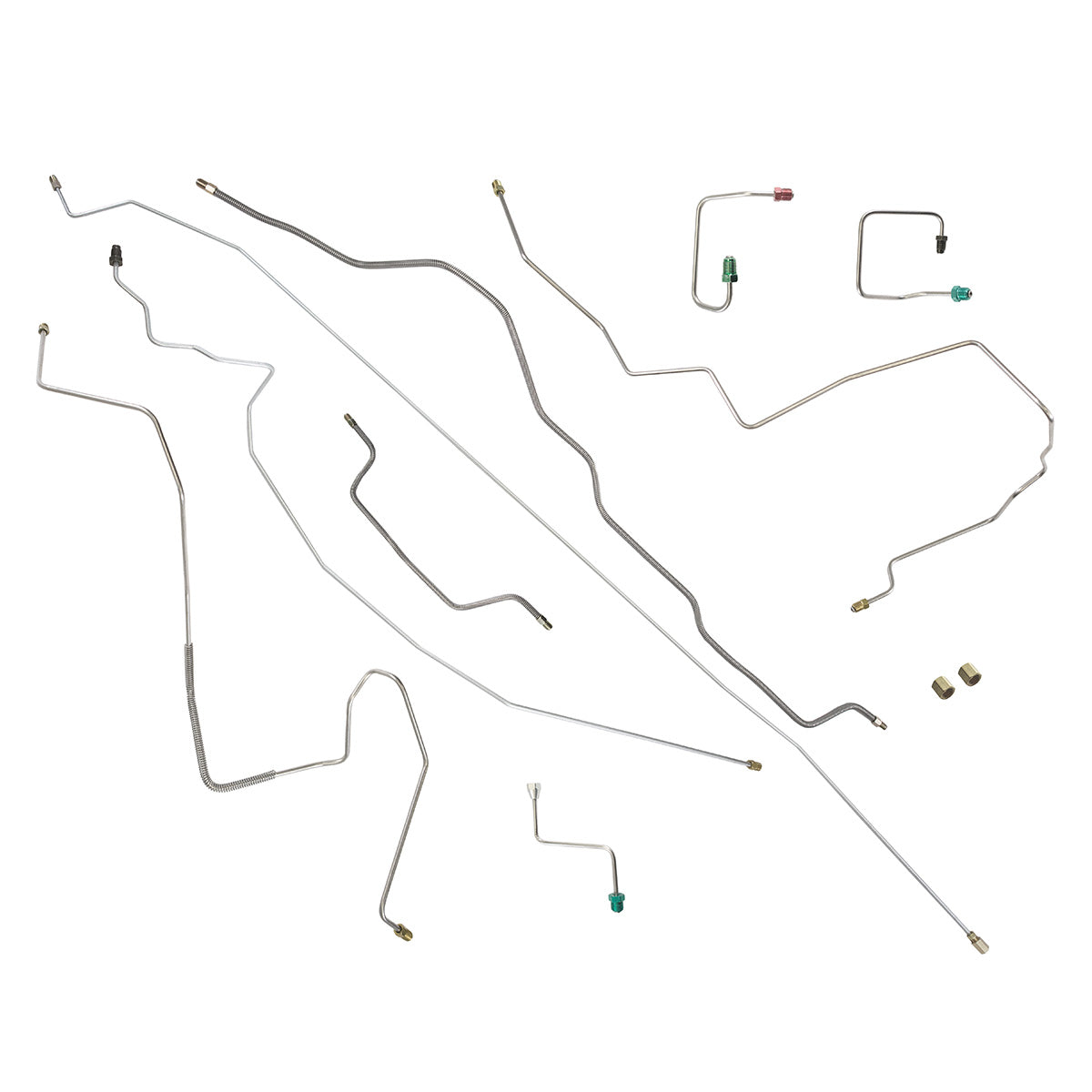 This preformed complete brake line kit will replace all the metal brake lines on your vehicle and includes the master cylinder lines, left front line and right front crossover line, intermediate lines, and rear axle lines/trailing arm lines.