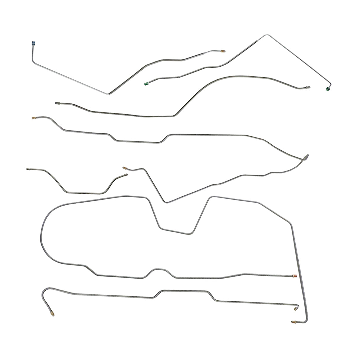 This preformed complete brake line kit will replace all the metal brake lines on your vehicle and includes the master cylinder lines, left front line and right front crossover line, intermediate lines, and rear axle lines/trailing arm lines.