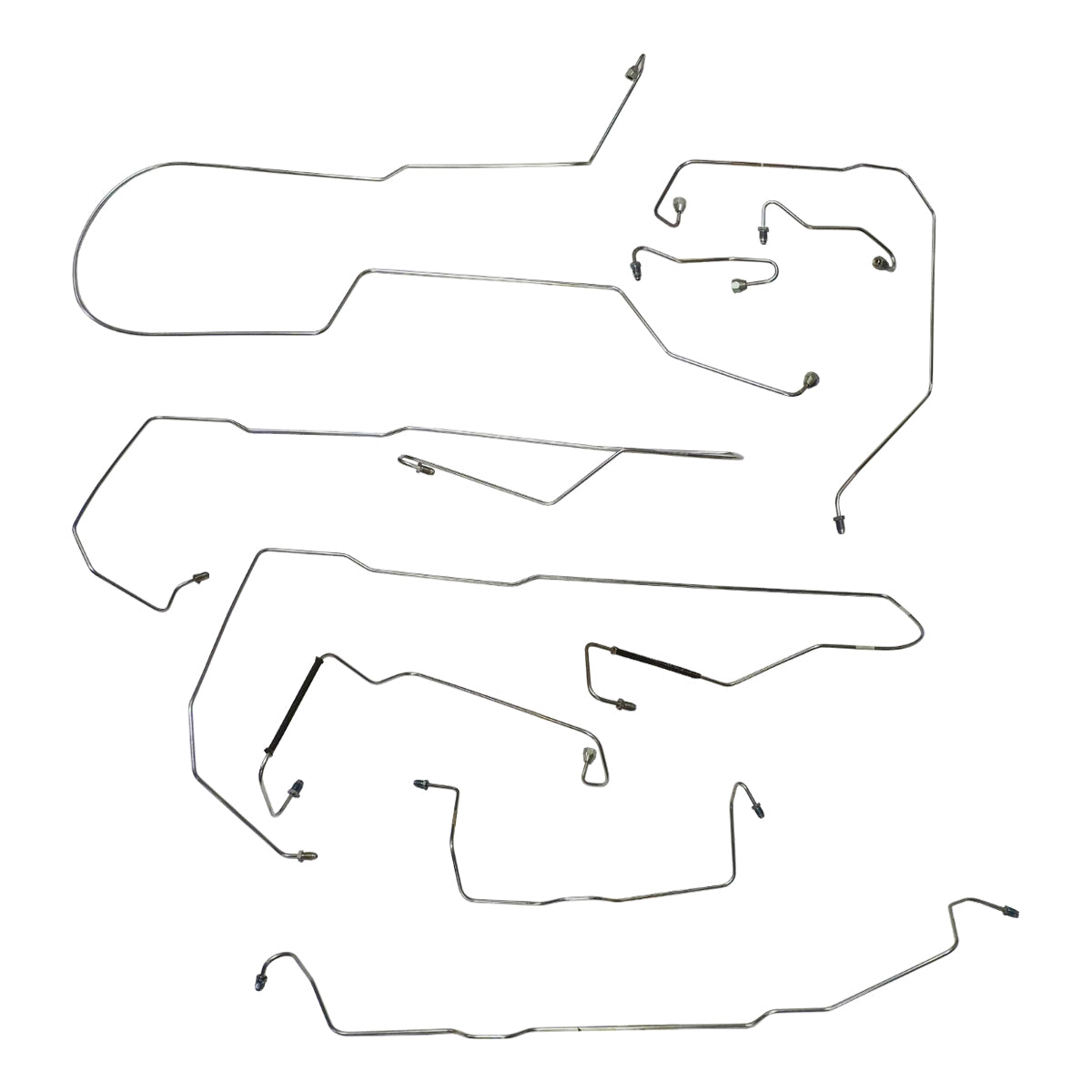 This preformed complete brake line kit will replace all the metal brake lines on your vehicle and includes the master cylinder lines, left front line and right front crossover line, intermediate lines, and rear axle lines/trailing arm lines.