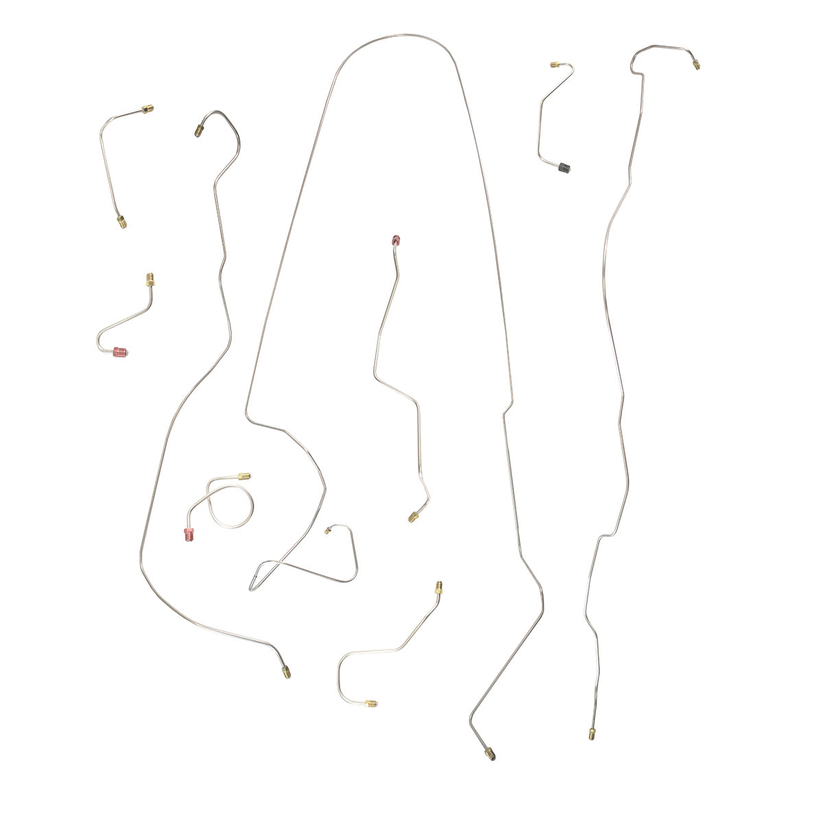 This preformed complete brake line kit will replace all the metal brake lines on your vehicle and includes the master cylinder lines, left front line and right-front crossover line, intermediate lines, and rear axle lines/trailing arm lines.