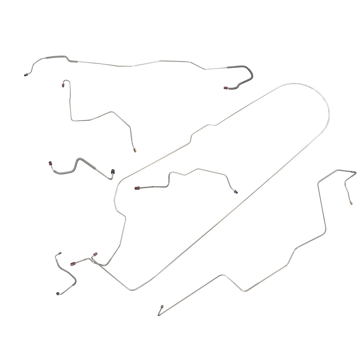 This preformed complete brake line kit will replace all the metal brake lines on your vehicle and includes the master cylinder lines, left front line and right-front crossover line, intermediate lines, and rear axle lines/trailing arm lines.