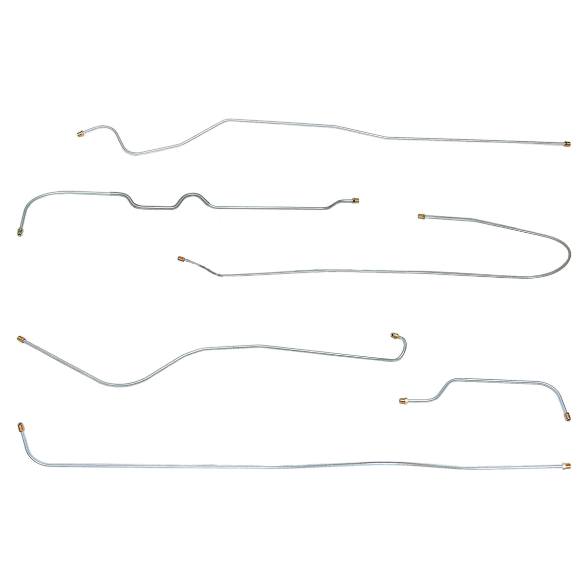 This preformed complete brake line kit will replace all the metal brake lines on your vehicle and includes the master cylinder lines, left front line and right-front crossover line, intermediate lines, and rear axle lines/trailing arm lines.
