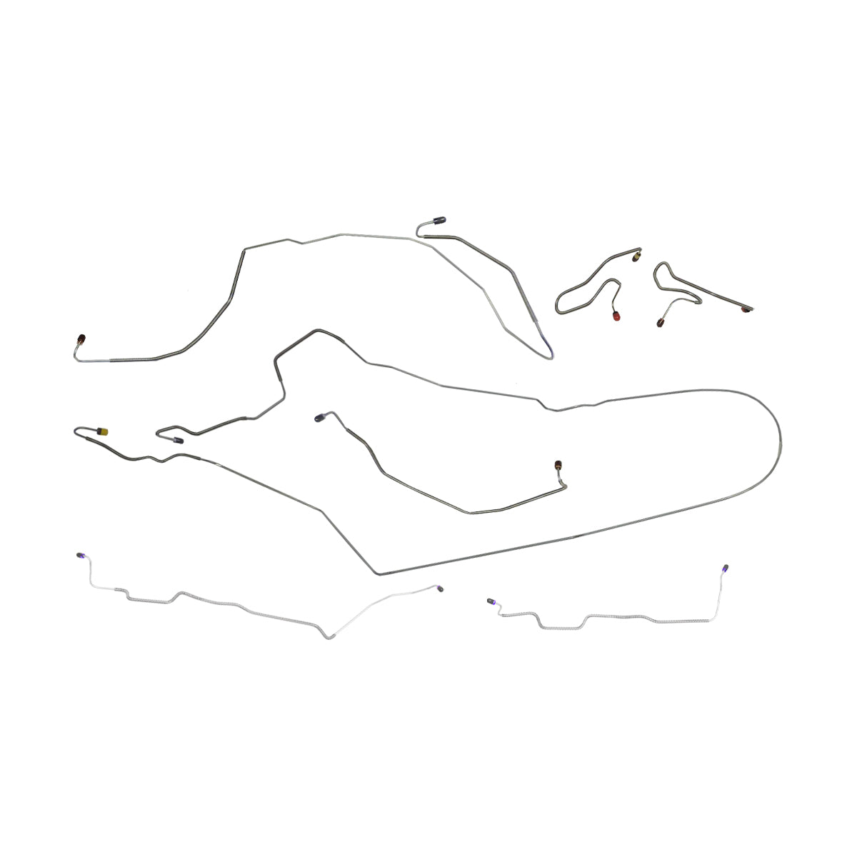 This preformed complete brake line kit will replace all the metal brake lines on your vehicle and includes the master cylinder lines, left front line and right-front crossover line, intermediate lines, and rear axle lines/trailing arm lines.