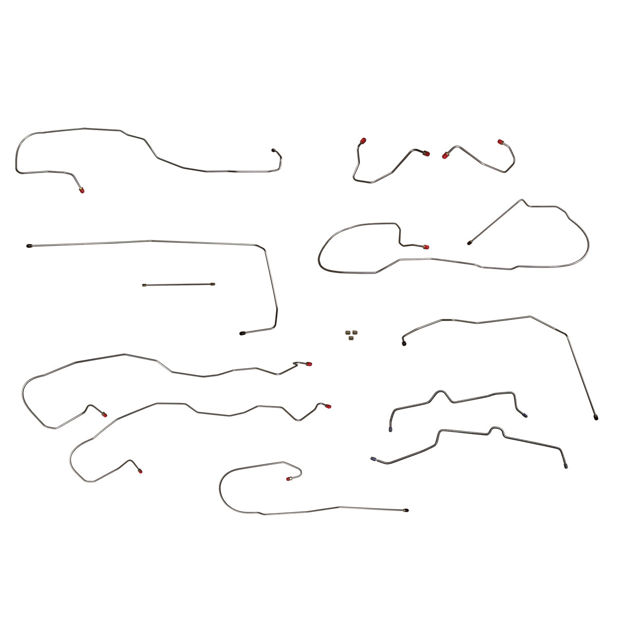 This preformed complete brake line kit will replace all the metal brake lines on your vehicle and includes the master cylinder lines, left front line and right front crossover line, intermediate lines, and rear axle lines/trailing arm lines.