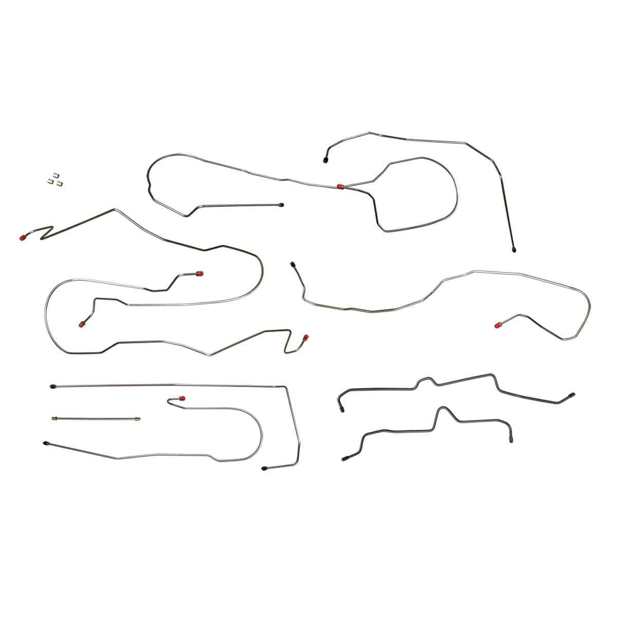 This preformed complete brake line kit will replace all the metal brake lines on your vehicle and includes the master cylinder lines, left front line and right front crossover line, intermediate lines, and rear axle lines/trailing arm lines.