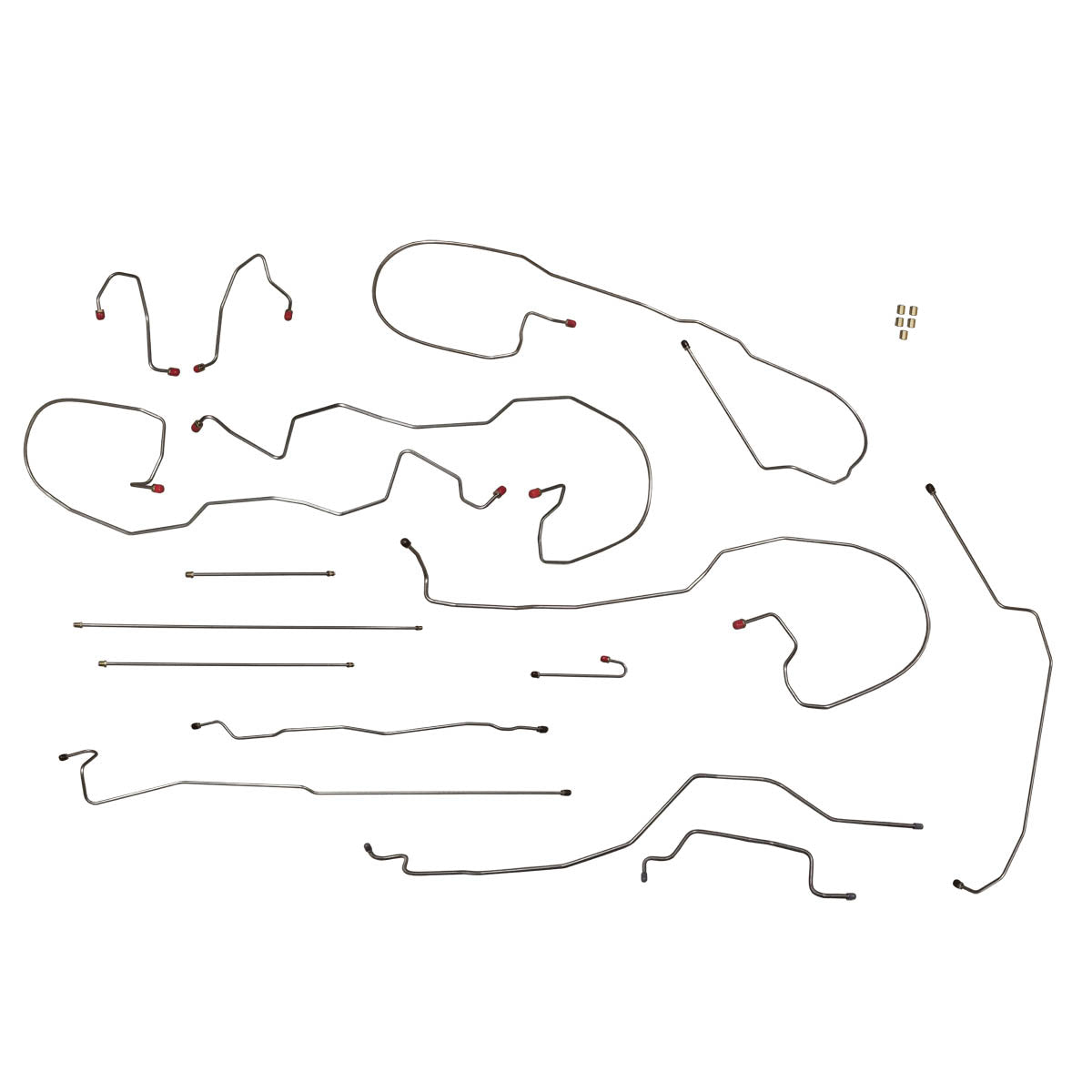 This preformed complete brake line kit will replace all the metal brake lines on your vehicle and includes the master cylinder lines, left front line and right front crossover line, intermediate lines, and rear axle lines/trailing arm lines.