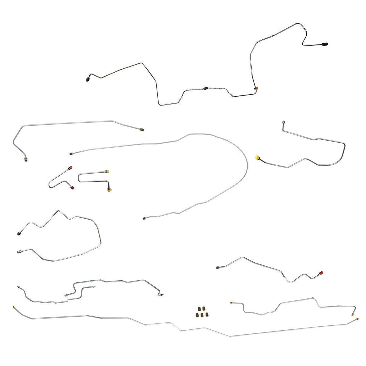 This preformed complete brake line kit will replace all the metal brake lines on your vehicle and includes the master cylinder lines, left front line and right front crossover line, intermediate lines, and rear axle lines/trailing arm lines.