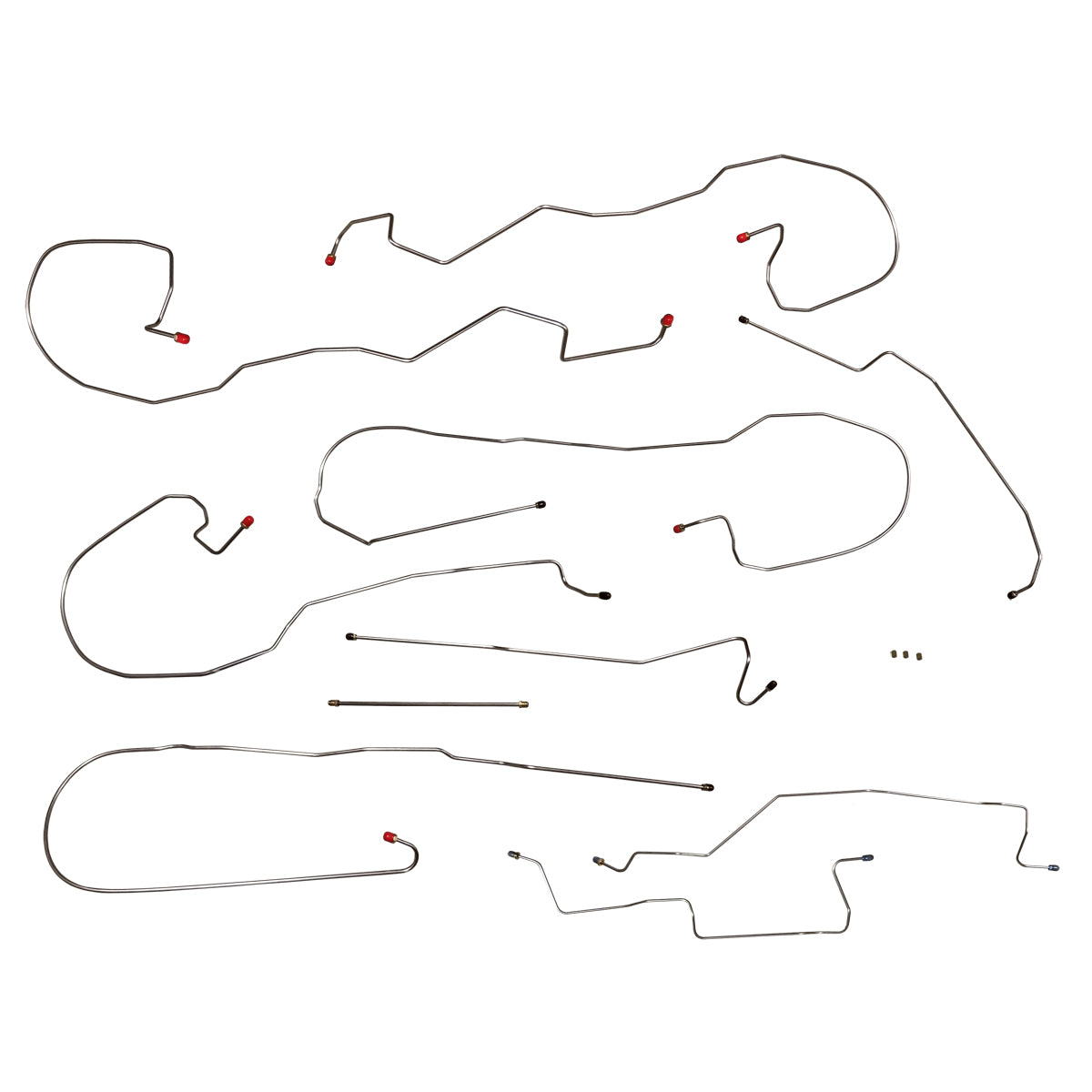 This preformed complete brake line kit will replace all the metal brake lines on your vehicle and includes the master cylinder lines, left front line and right front crossover line, intermediate lines, and rear axle lines/trailing arm lines.