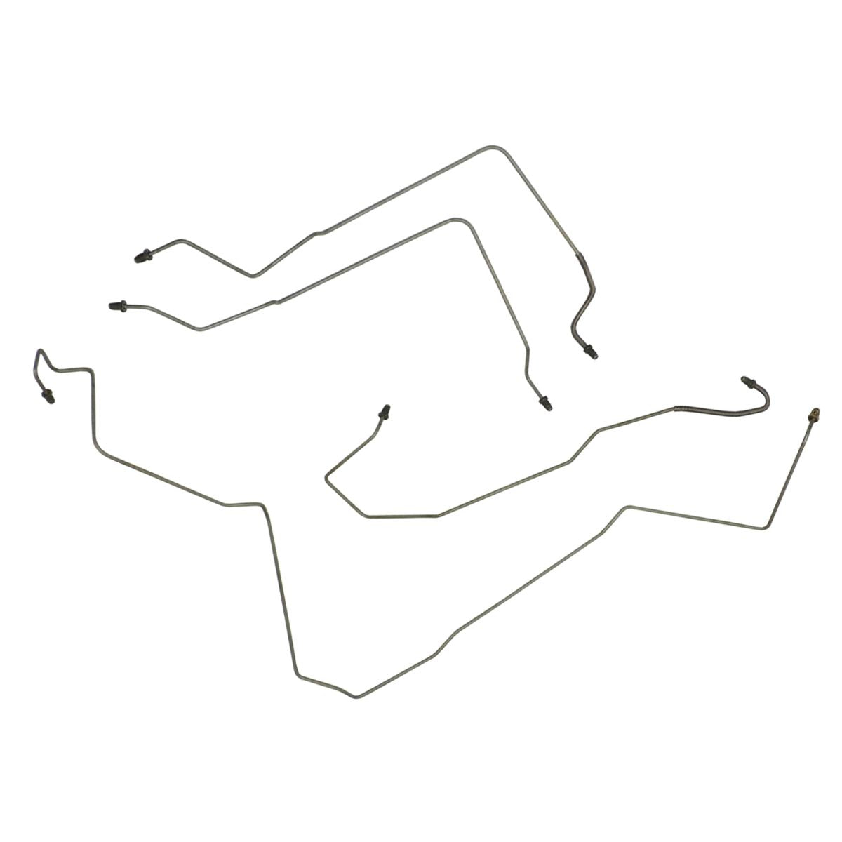 This preformed front brake line kit includes all the metal brake lines to supply the front two wheels of your vehicle and includes the master cylinder lines, left front line, and right front crossover line.