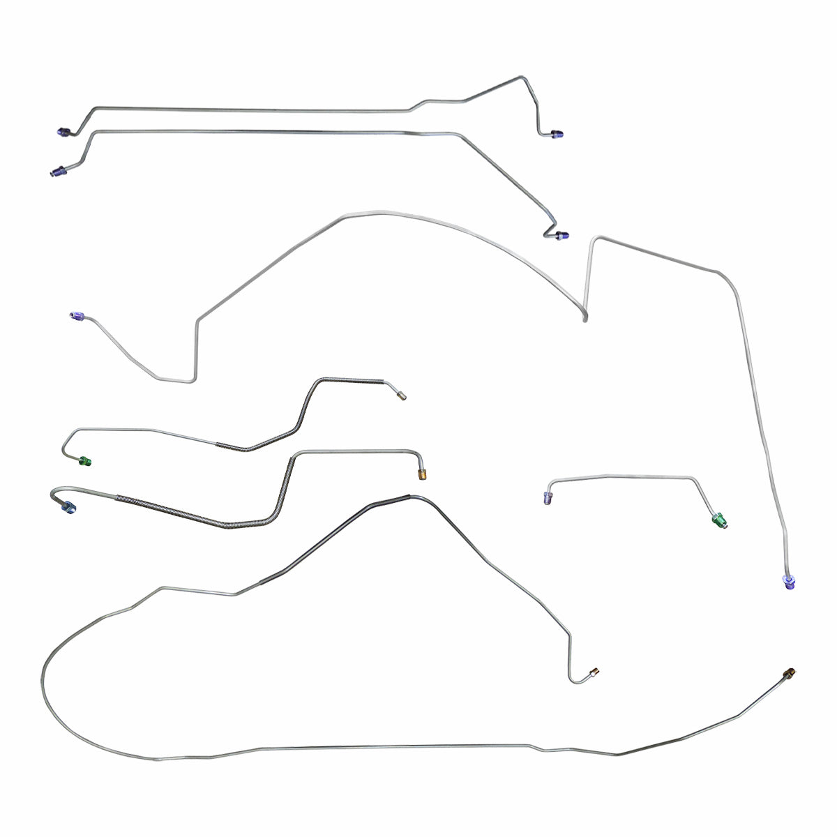 This preformed complete brake line kit will replace all the metal brake lines on your vehicle and includes the master cylinder lines, left front line and right-front crossover line, intermediate lines, and rear axle lines/trailing arm lines.