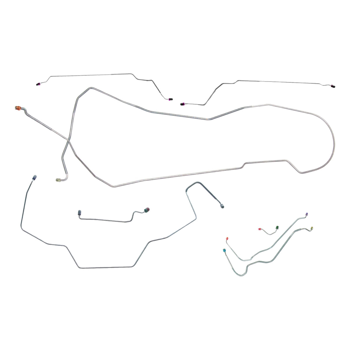 This preformed complete brake line kit will replace all the metal brake lines on your vehicle and includes the master cylinder lines, left front line and right front crossover line, intermediate lines, and rear axle lines/trailing arm lines.