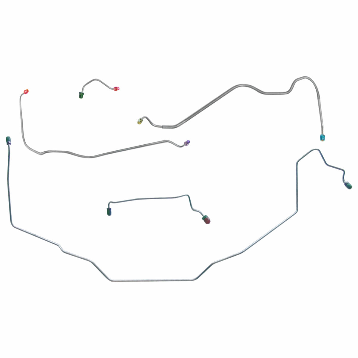 This preformed front brake line kit includes all the metal brake lines to supply the front two wheels of your vehicle and includes the master cylinder lines, left front line, and right front crossover line.