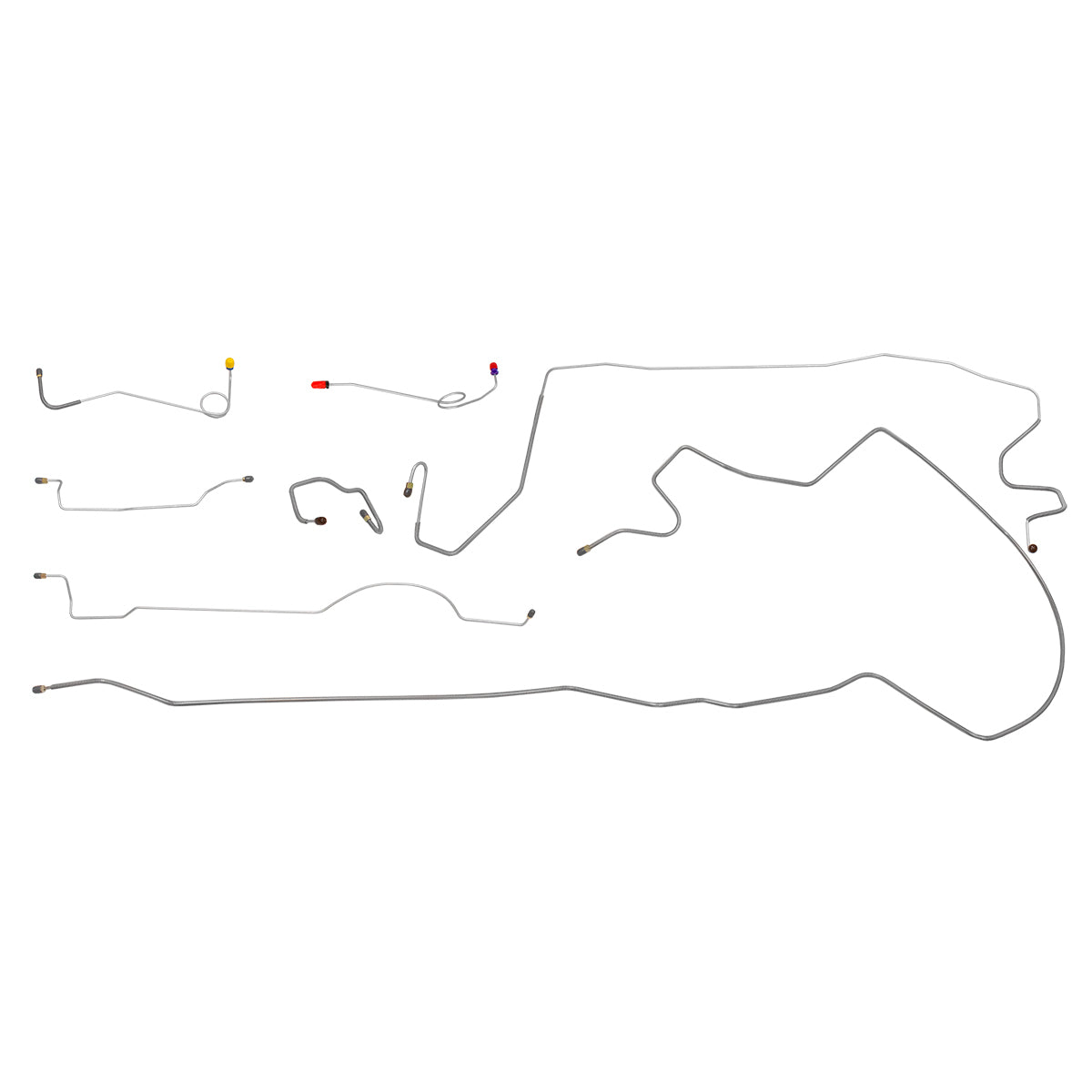 This preformed complete brake line kit will replace all the metal brake lines on your vehicle and includes the master cylinder lines, left front line and right-front crossover line, intermediate lines, and rear axle lines/trailing arm lines.